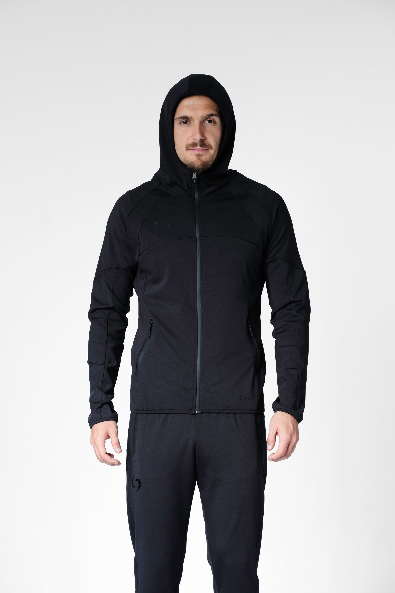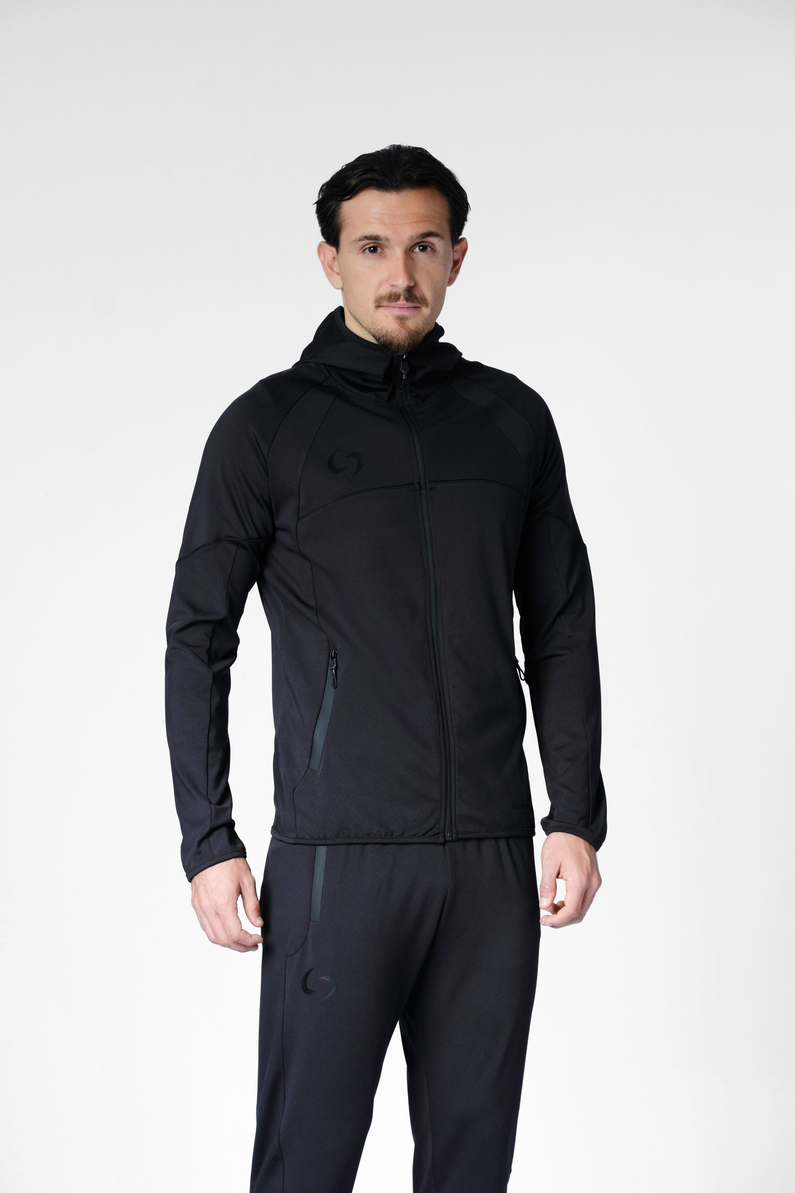 S-cut tracksuit jacket with hood (black/black)