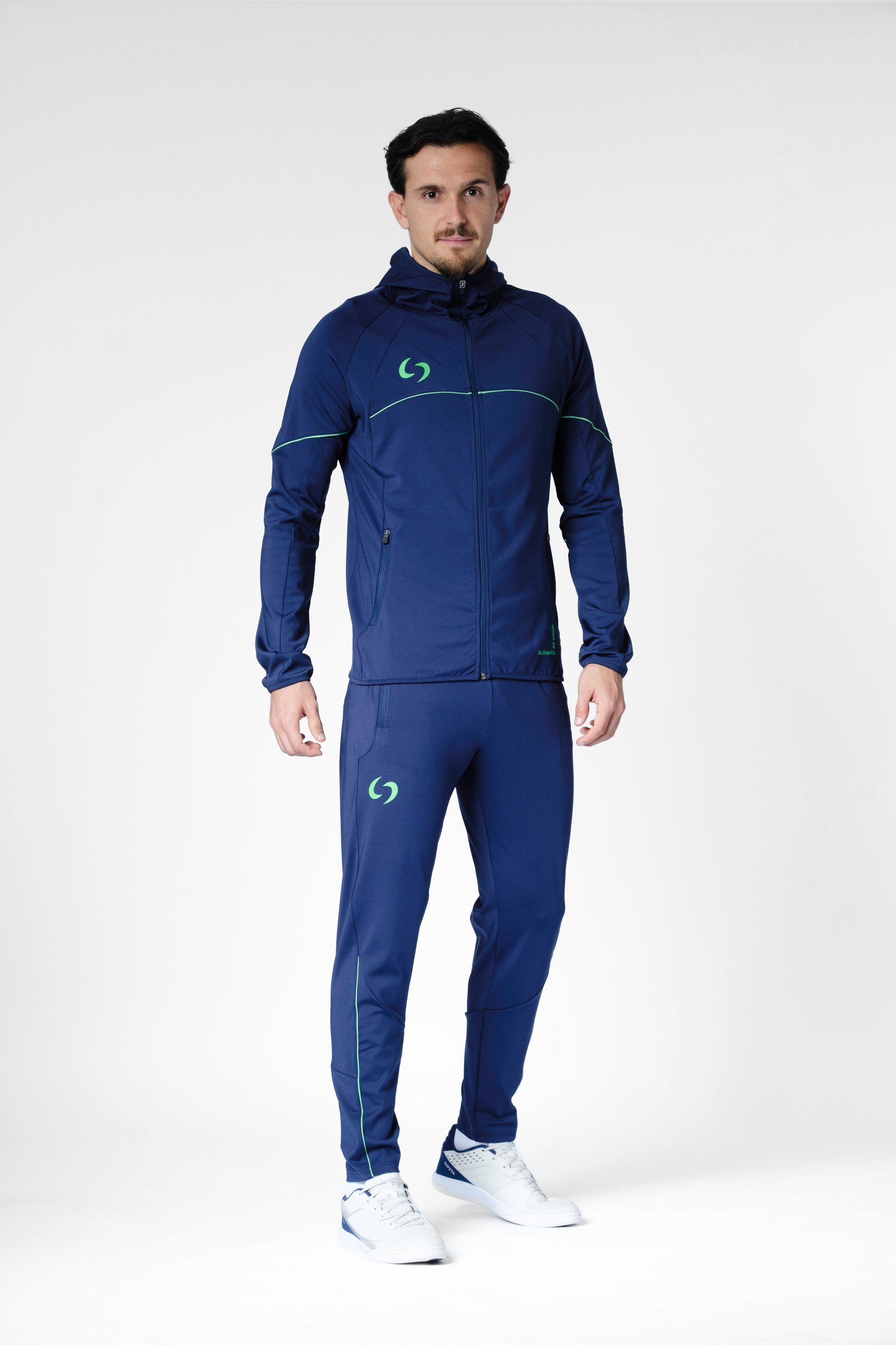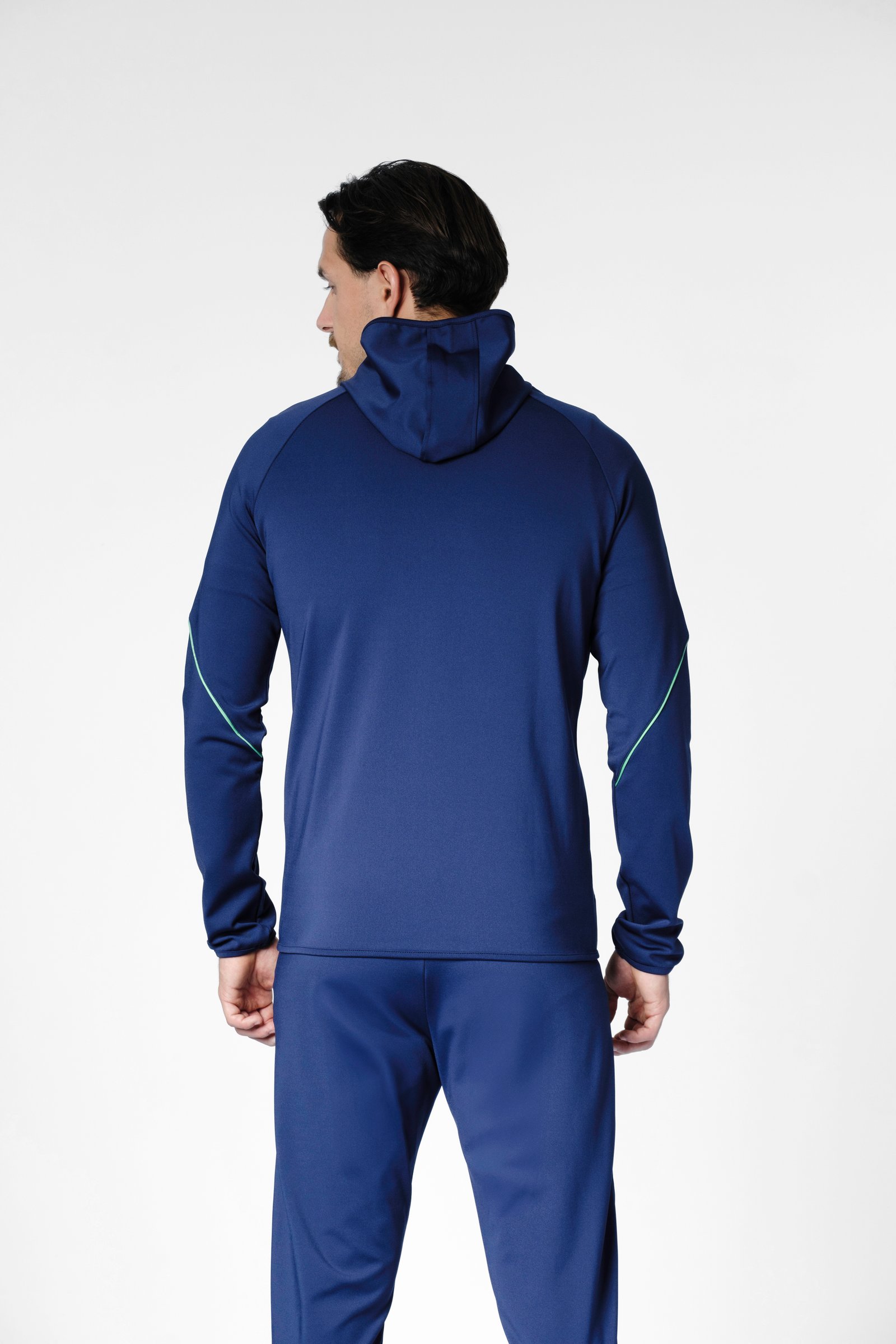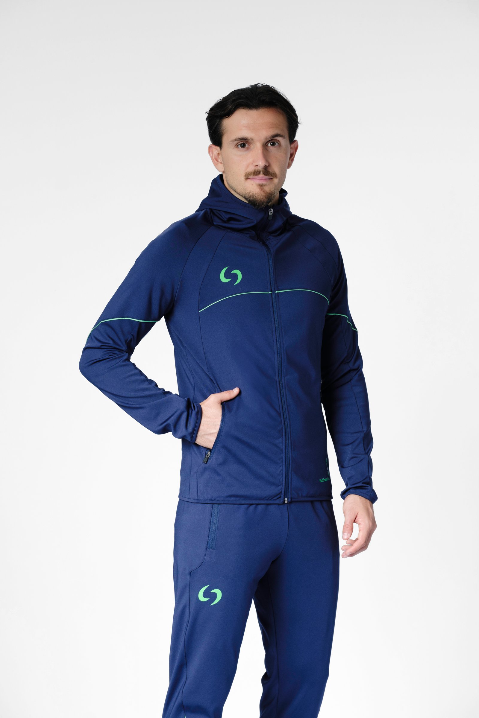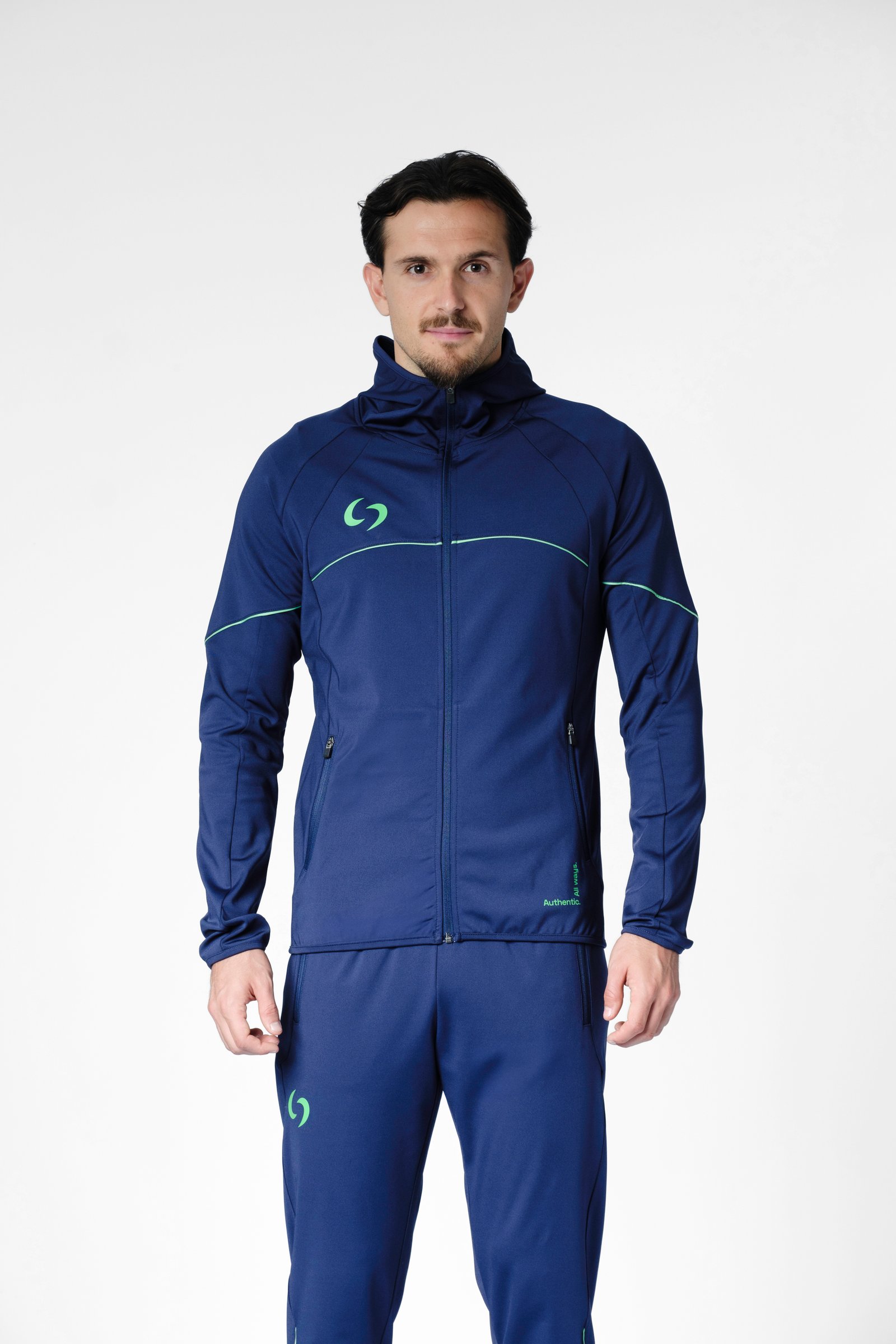 S-cut tracksuit jacket with hood (navy blue/green)